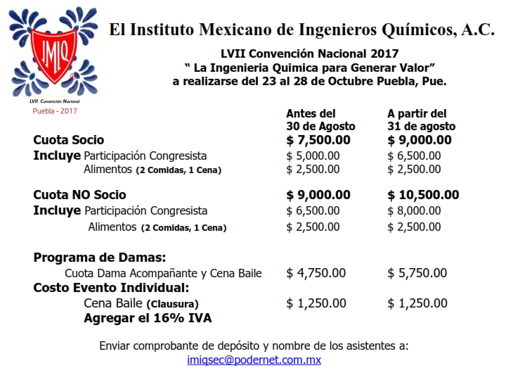 A nombre del Instituto Mexicano de Ingenieros Químicos, A. C.